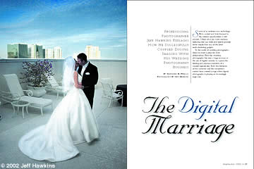 For photographer Jeff Hawkins, co-author of Professional Techniques For Digital Wedding Photography (Amherst Media: ISBN 1-58428-073-5), the enthusiastic decision to move into digital has proven not only financially beneficial, but has also freed him creatively. It has allowed Hawkins to create a distinction between him and his competition.